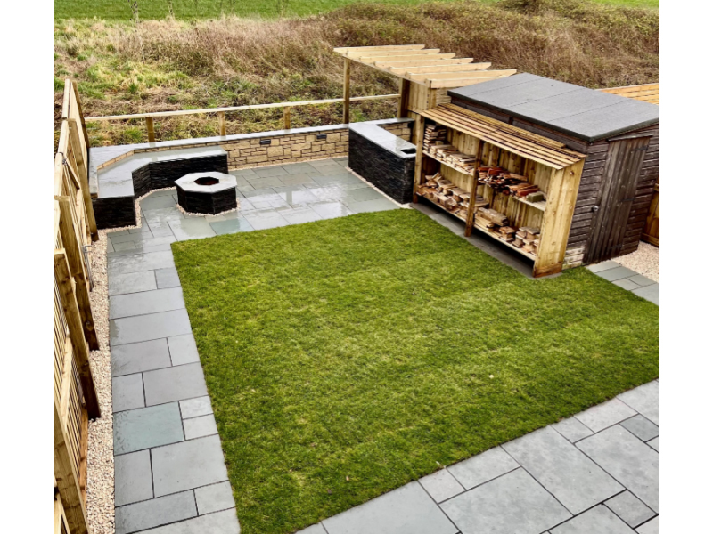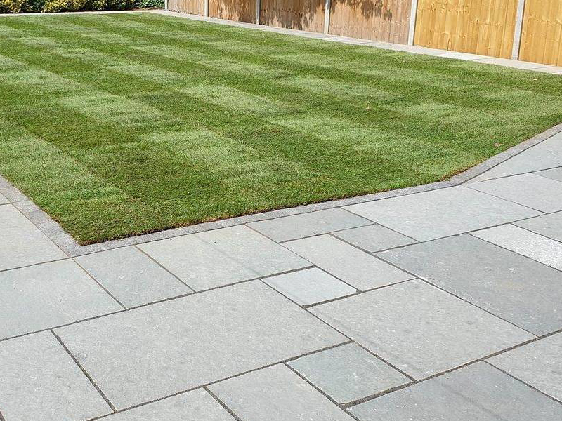Kota Blue Indian Limestone Paving Slabs - Riven - Mix Patio Pack - Sawn Edge - 22mm