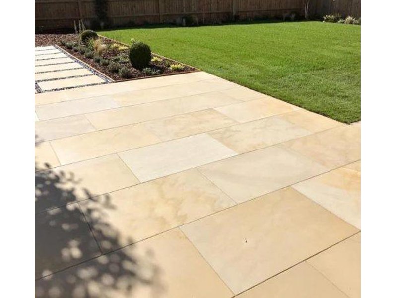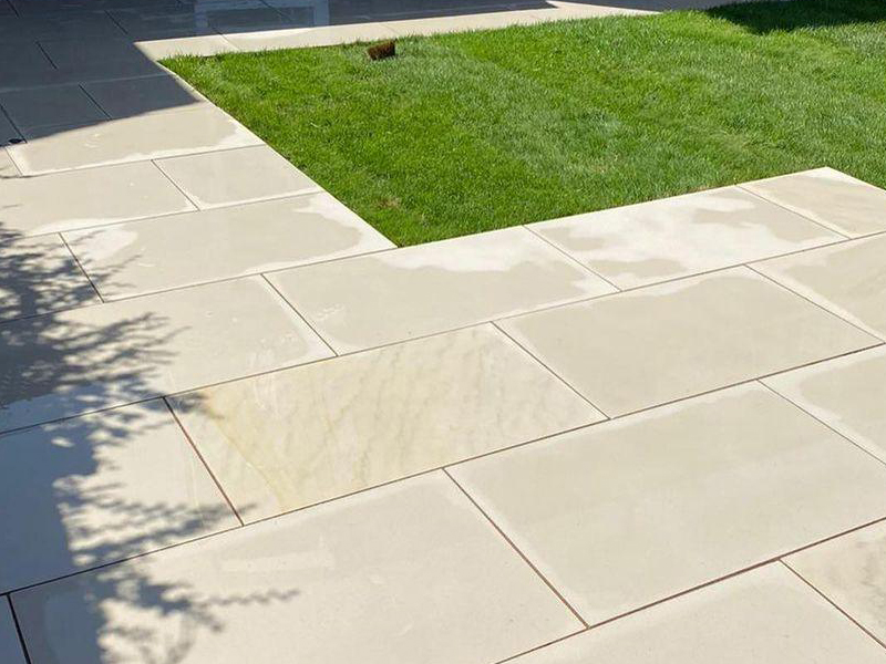 Fossil Mint Indian Sandstone Paving Slabs - Sawn & Honed